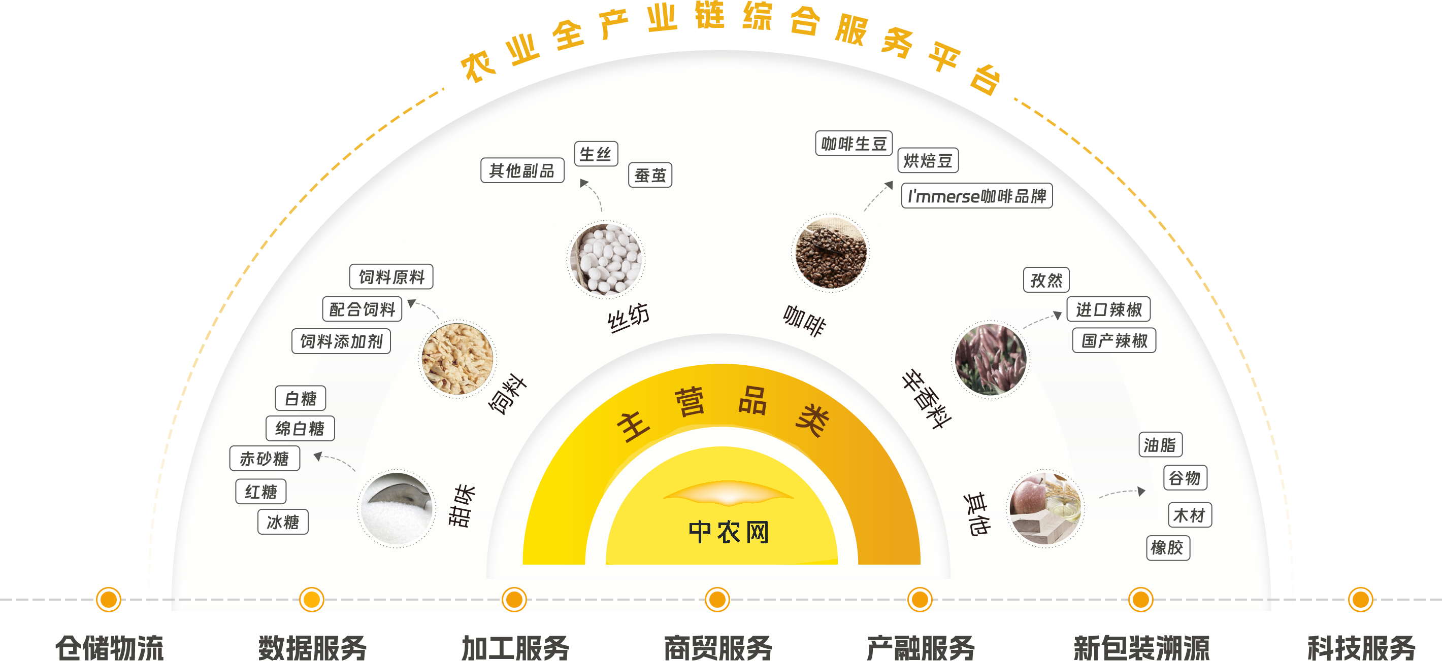 中农网是农业全产业链综合服务平台,,,业务涉及甜味、、、、饲料、、、丝纺、、、、香辛料、、咖啡、、、、橡胶等多元化交易品类,,,,为产业上下游的生产者、、加工企业、、供应商、、、、终端商提供全流通解决方案,,,服务网络遍布中国31个省份,,,184个城市及海外9个国家。。。平台拥有600 多家物流服务商和 2180 多个合作仓储网点,,,,连续4年GMV超千亿规模,,,已服务大中型及小微企业累计超17万。。